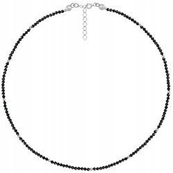 Bransoletka srebrna z kamieni naturalnych spinel czarny 3 mm przekładana srebrnymi kulkami