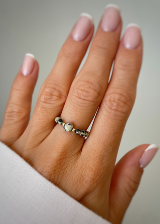 Elastic ring with natural lapis lazuli stones and pearl