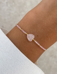 Bransoletka na nici z różowego kwarcu z sercem - miłość, wrażliwość, odwaga