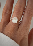 Pierścionek elastyczny cyrkonia szampańska, róża z masy perłowej, dobrobyt, pewność siebie