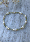 Bransoletka na gumce cyrkonia khaki i perła naturalna